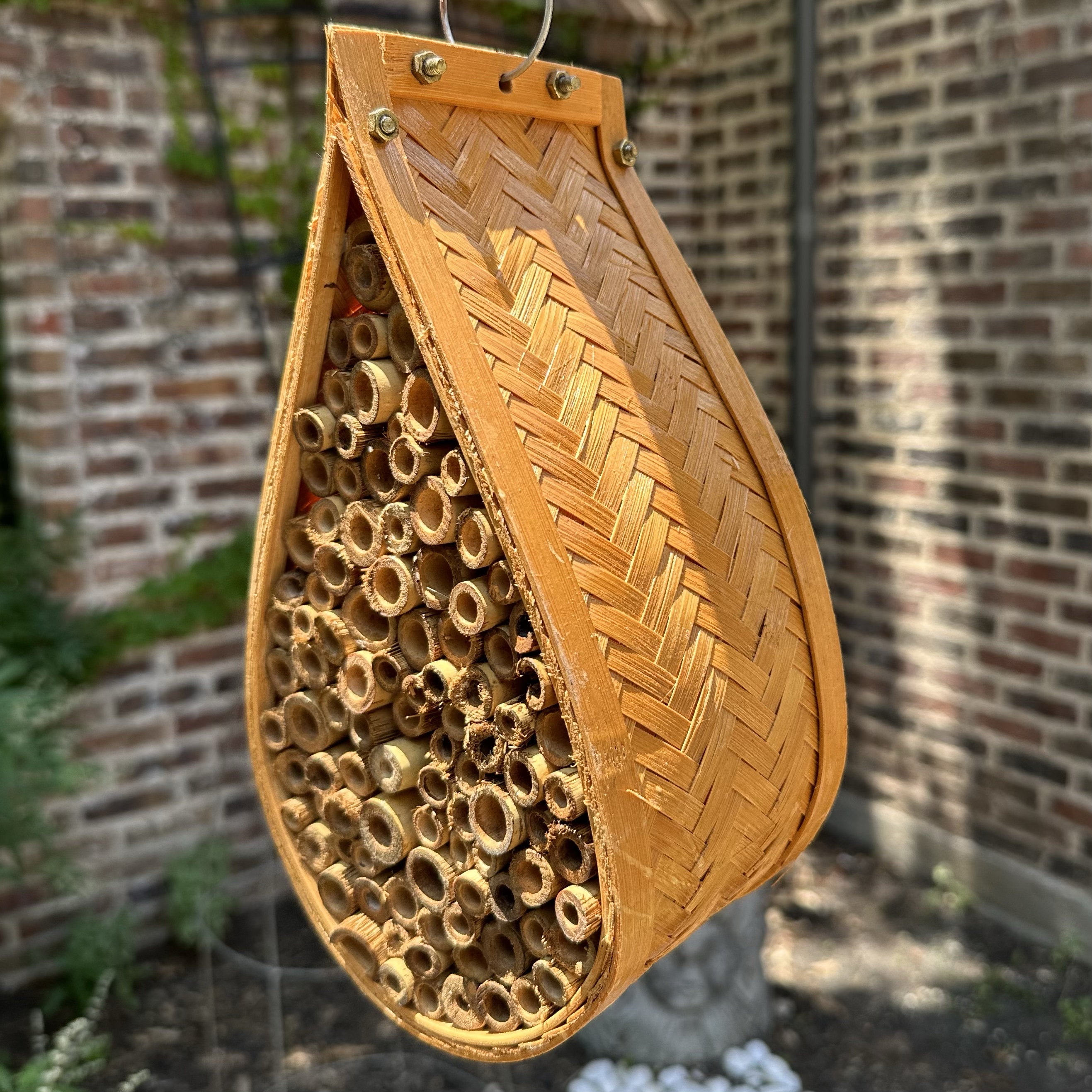 One of the easiest ways to help them is to get a house like this. This is a house created for mason bees. While they do not live in large hives, mason bees do like to be neighbors. The tunnels in the house provides a ready to move in commune, then the bees seal the entrance with mud.