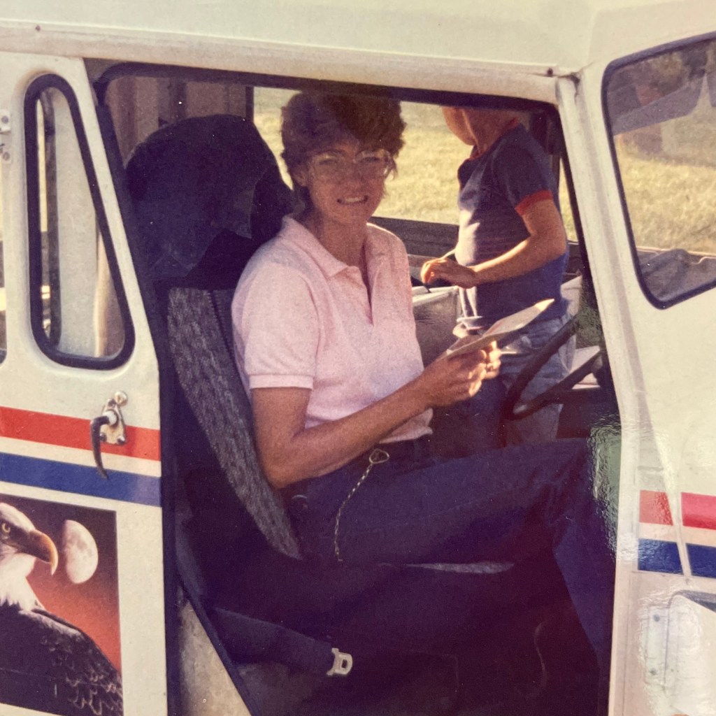 Mom knew a ton of people on her route. Back then couriers had set routes. It worked out for me when Halloween came because she knew where to get the good candy. Maybe try to get to know your mail person. Think about writing them a thank you. Something about a hand written note still has an effect on us all. When you read this, “I love you, Mom! Thank you for all you did!!”