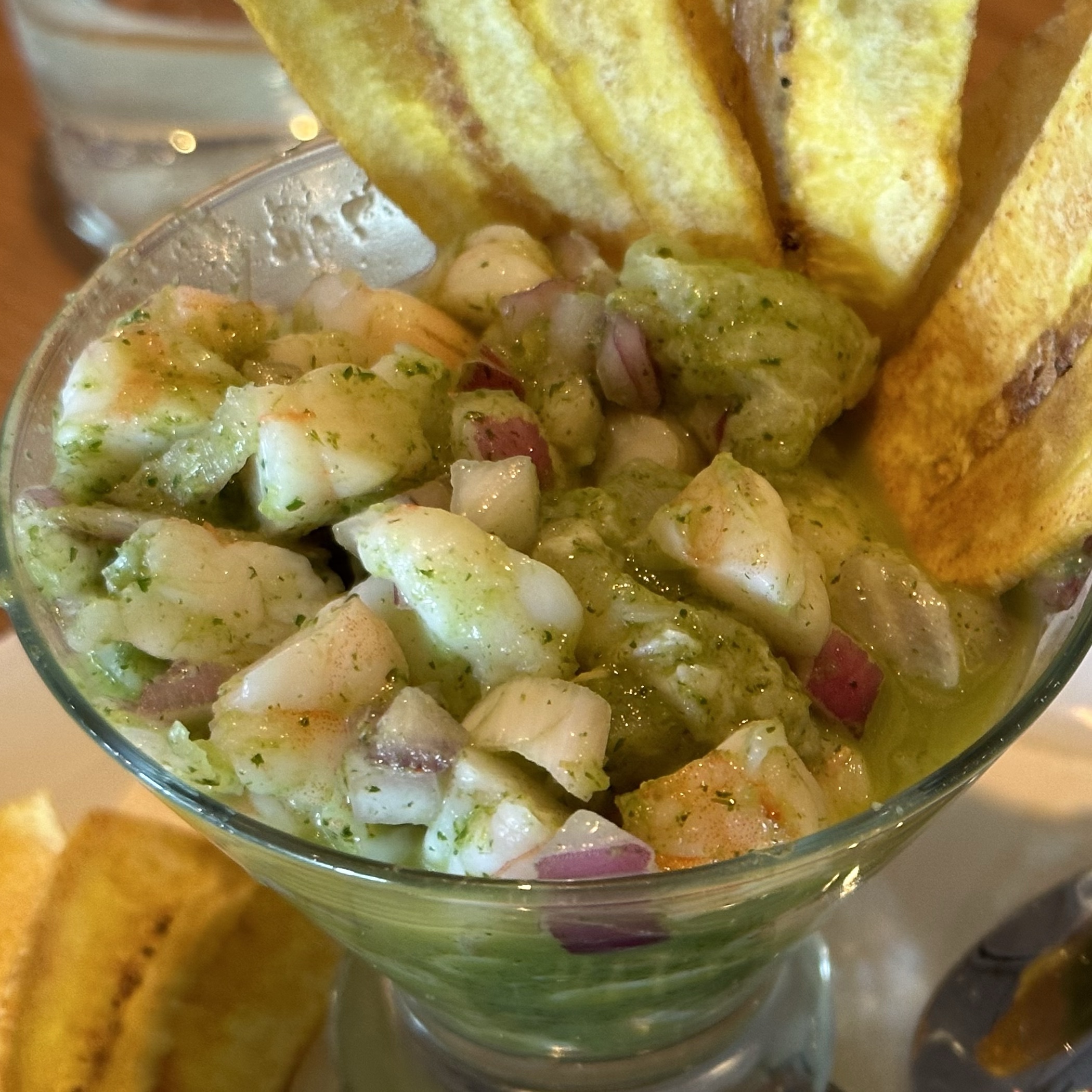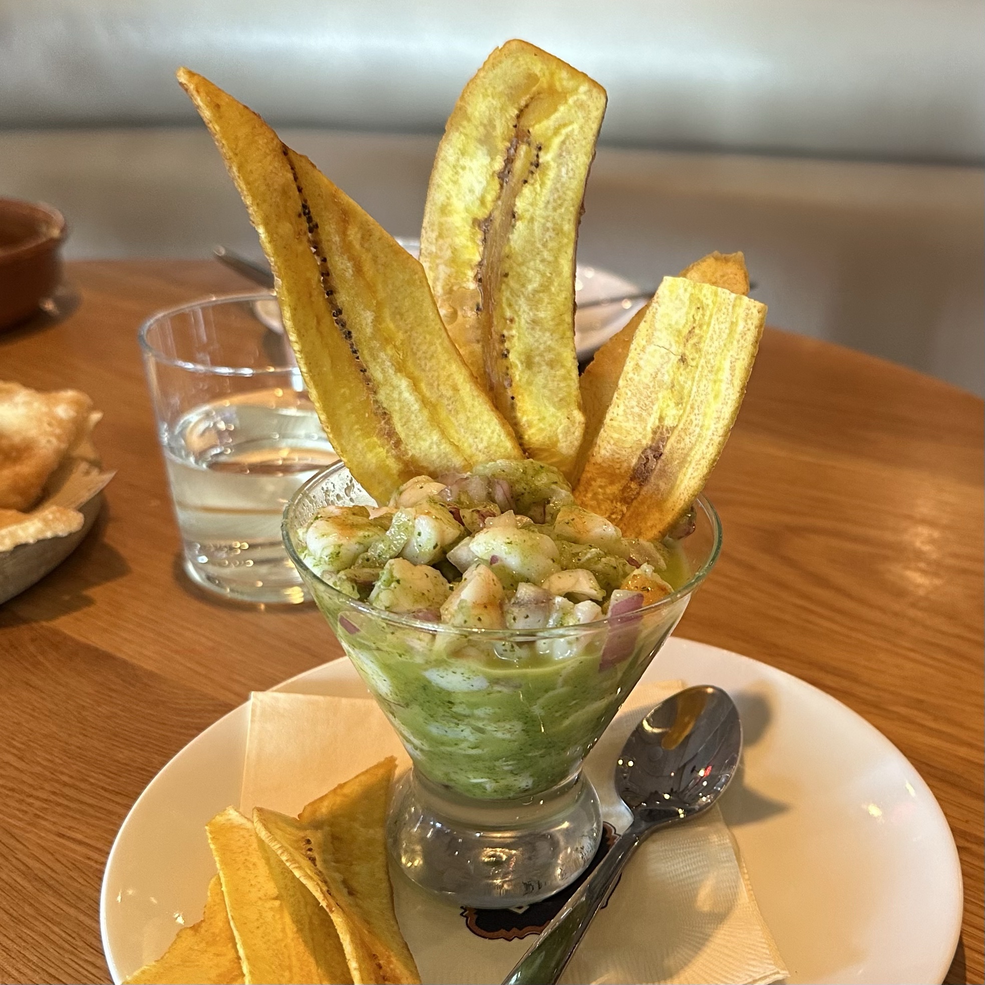 At Bulla Gastrobar, the Ceviche de Jalapeño is shrimp, fish, roasted jalapeño, fresh lime & orange served with plantain chips.