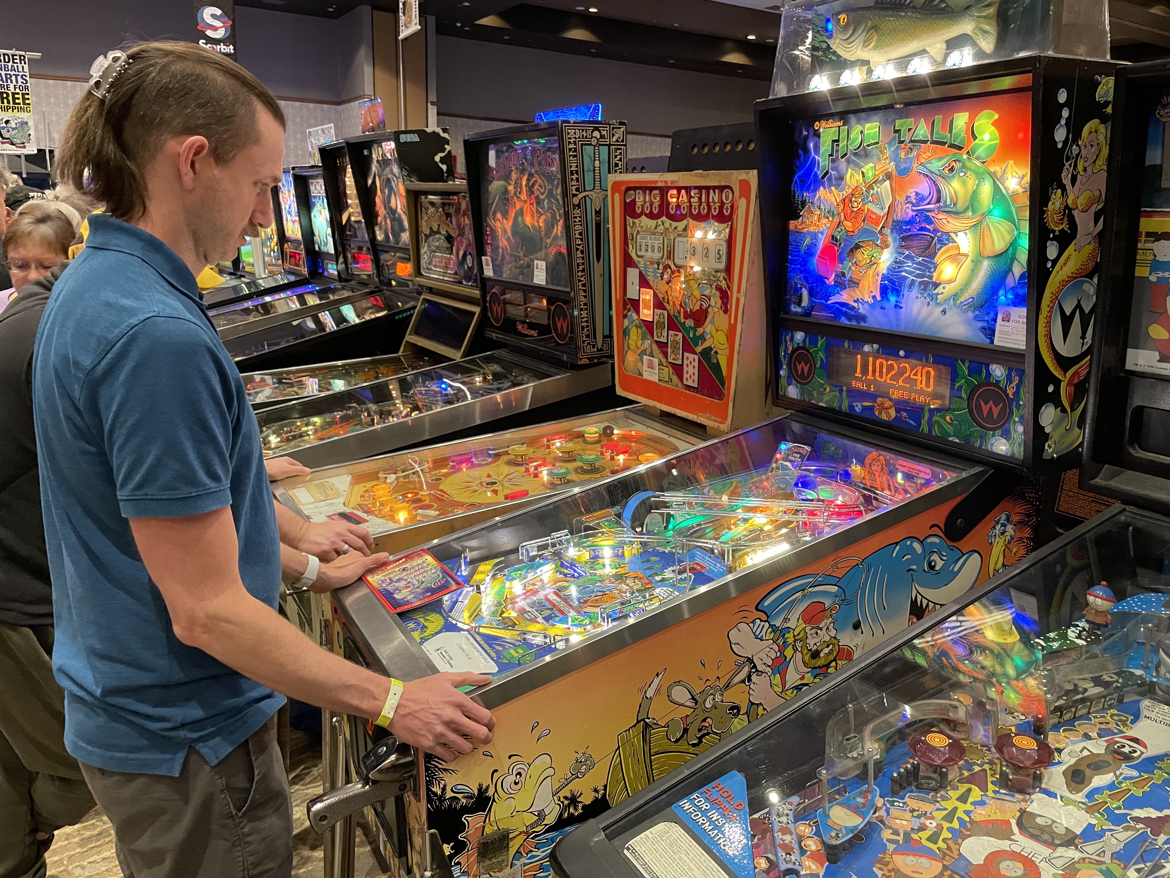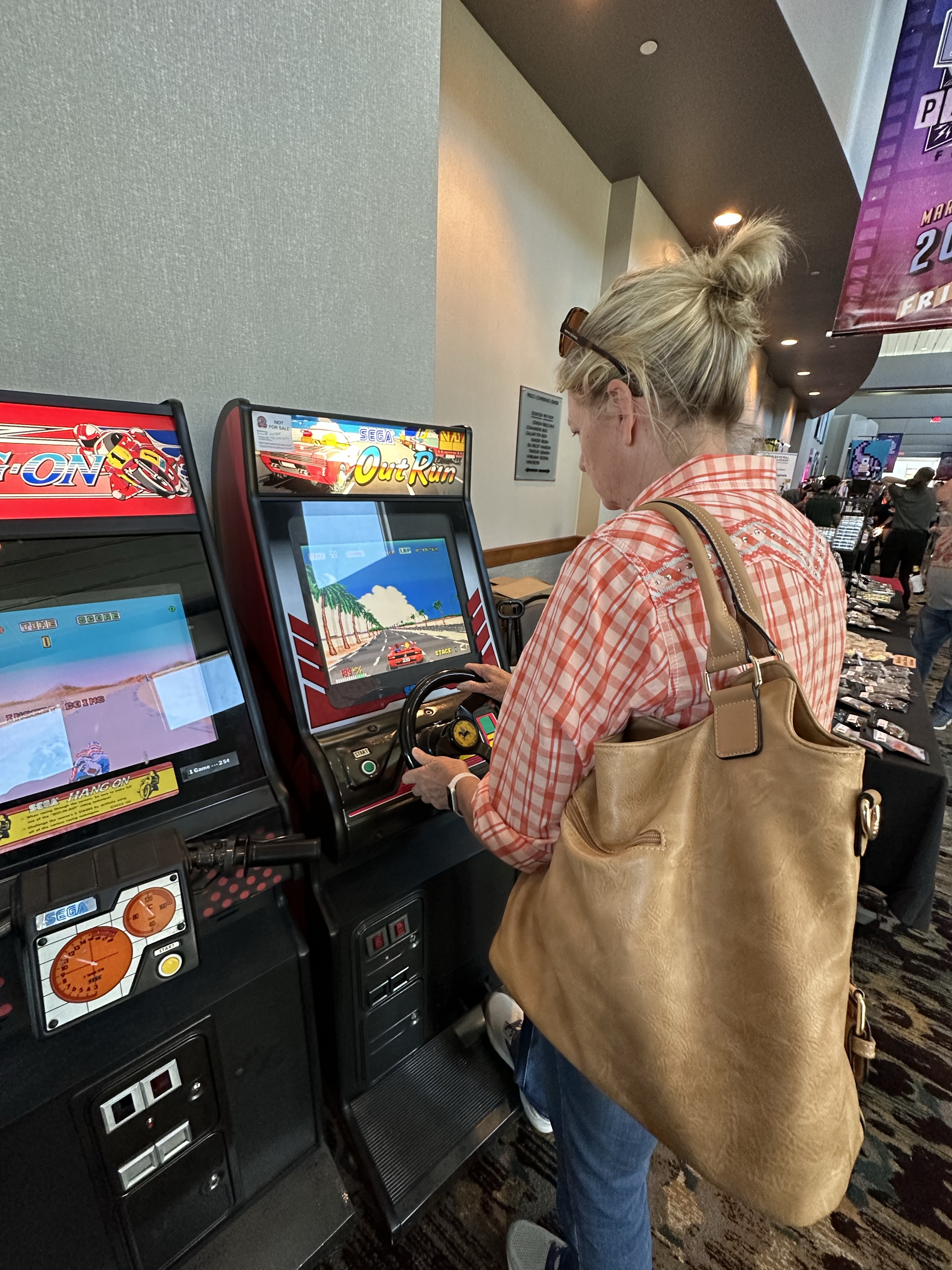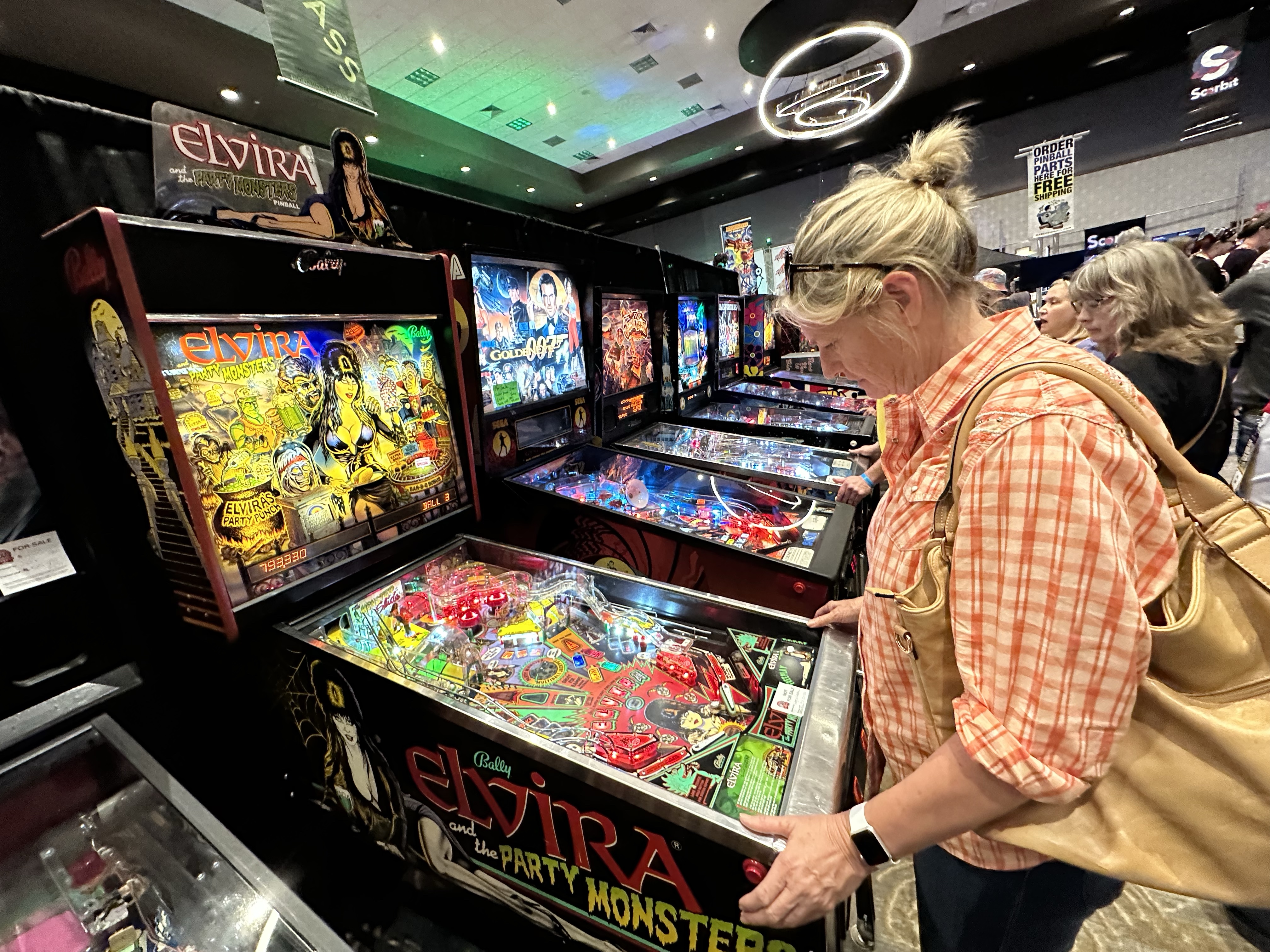 When you found an open game you just hopped on and played. It was fun. The newer and more popular games had a bit of a line. You can tell Mom’s done this before: purse tucked up under the arm, staggered stance, pure focus, pinball professional.